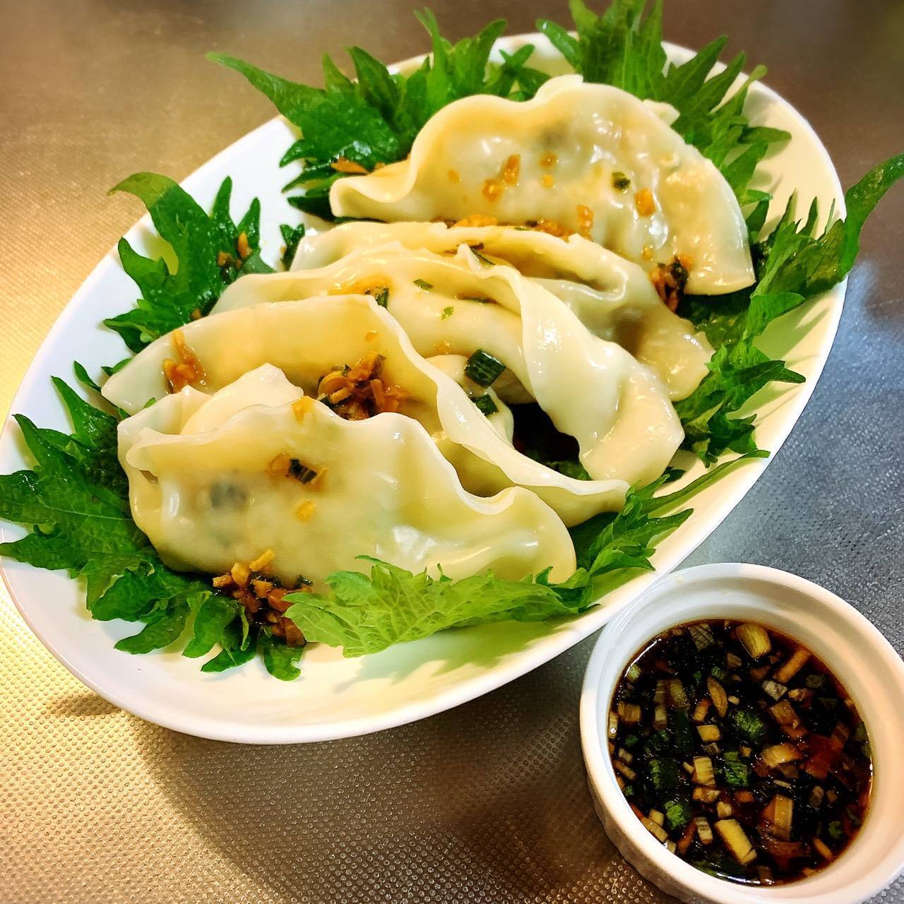 野菜がたっぷり入った大ぶりの水餃子です。8分茹でるだけの簡単調理で、鍋に入れてもよし。同梱のネギだれをかけたり、酢胡椒につけてもさっぱりと美味しくいただけます。